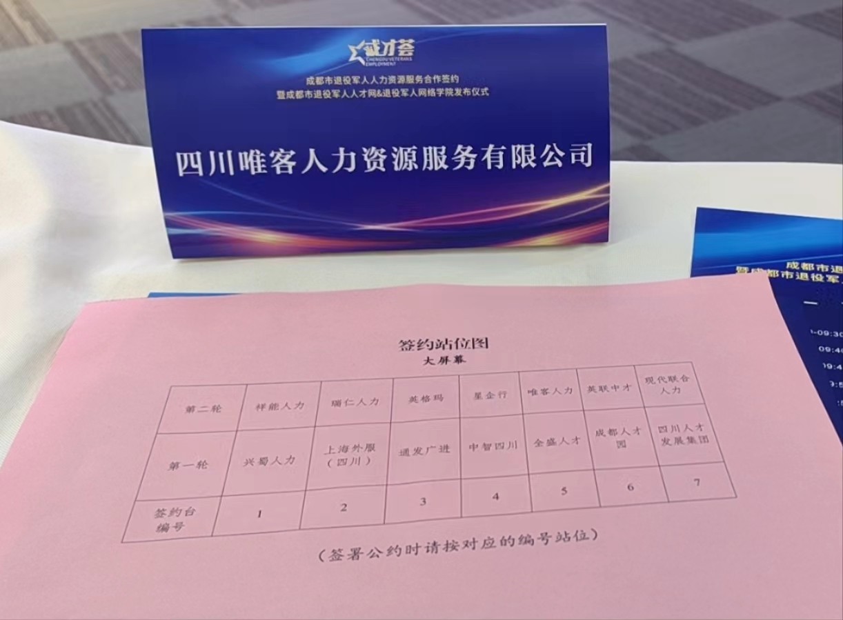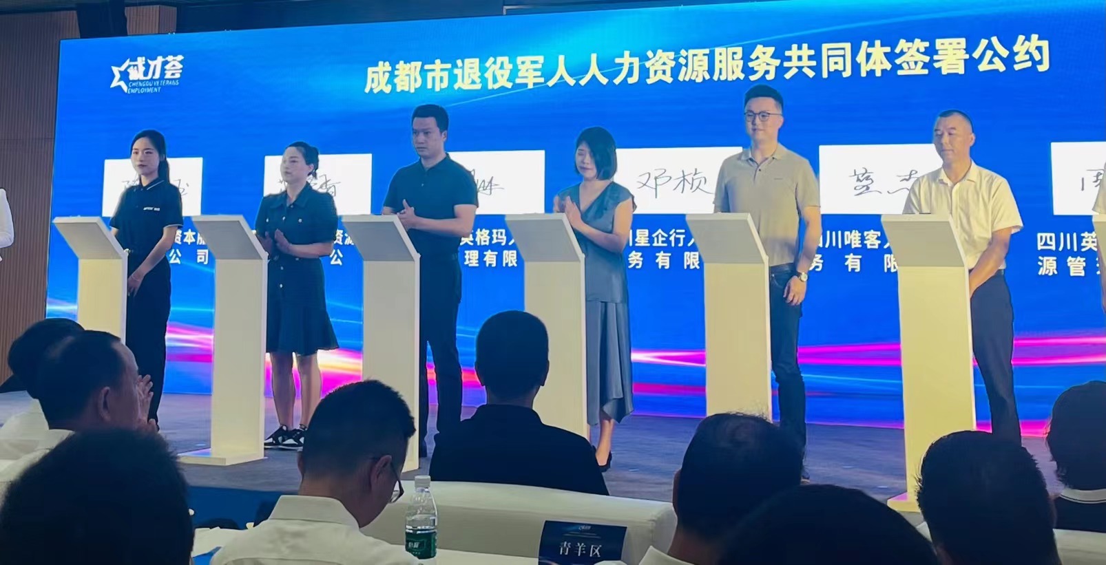 (四川唯客總經(jīng)理藍杰上臺簽署成都市退役軍人人力資源服務(wù)共同體公約)